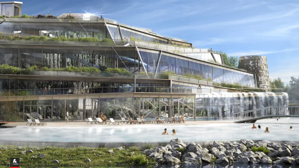 Une autre particularité du projet réside dans le raccordement de l’ensemble du site à une source géothermique installée pour l’occasion à l’entrée du site.
